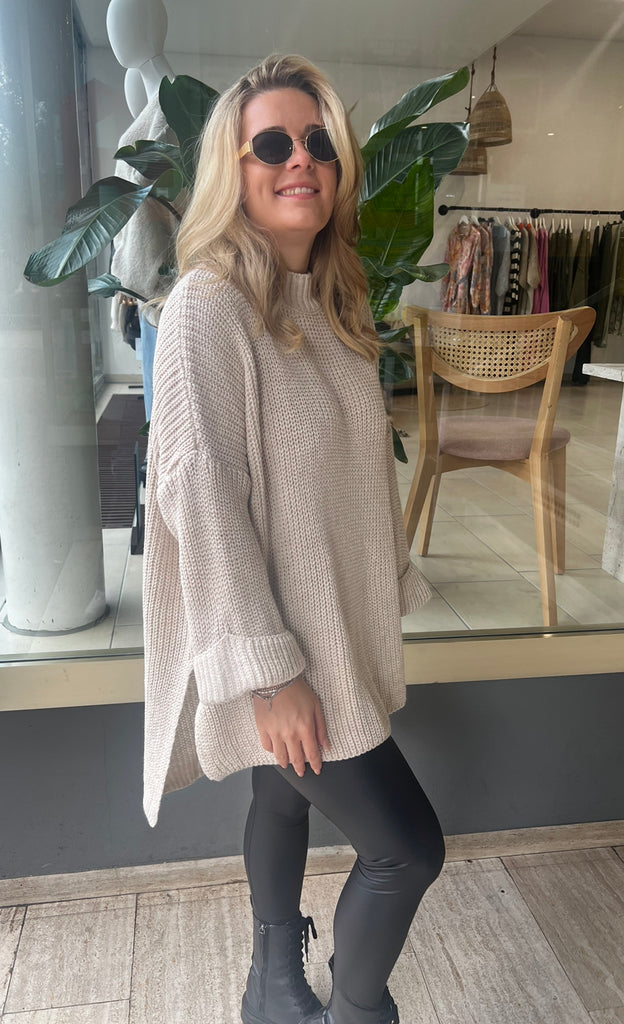 Strickpullover mit Schlitz – beige